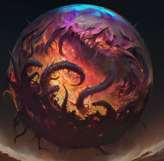 Меня встречает парящая сфера, которая будто бы имеет прозрачную стеклянную поверхность, позволяя посмотреть на то, что происходит внутри души. И там прям какой-то суп из проклятой жижи, копошащихся червей, костей, клыков и наверняка блох. Нет, я понимаю, конечно, что объект полностью нематериальный, я могу пройти сквозь него, ничего не почувствовав, но даже смотреть на это противно.