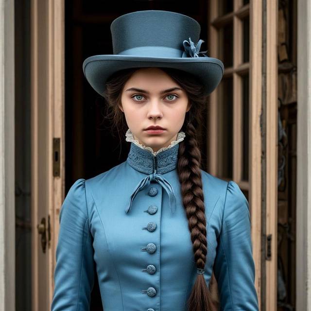 На улице по левую сторону от крыльца выстроились в рядочек слуги, на самом крыльце стояли несколько человек: темноволосая девушка, чуть постарше меня в голубом брючном костюме и шляпке, возникла ассоциация с верховой ездой.