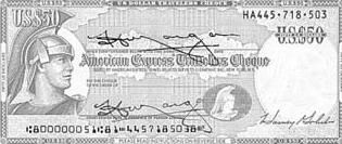 Новинка 1985 г. – "подарочный" чек – выпускается в небольшом количестве и предназначается для выплат престижных премий. Номинированные в суммах 10, 25, 50 и 100 долл., подарочные чеки продаются только на территории США, но оплачиваются в любом пункте обслуживания дорожных чеков.