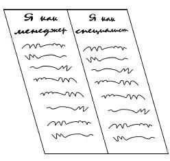 Один из важнейших навыков менеджера заключается в умении составлять список своих ежедневных дел и его постоянно анализировать. Очевидно, часть дел, которая попадет в этот список, будет относиться непосредственно к менеджерской работе, т. е. к работе по управлению, а другая часть дел – к его работе, как профессионала. Несомненно, что в среднем случае желательно убывание профессионального списка, а список "я как менеджер" должен все время проверяться под девизом "Относятся ли мои менеджерские дела к тому уровню управления, на котором я нахожусь?".