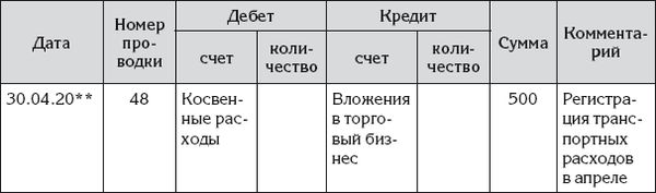 В профессиональном бухгалтерском учете полагается транспортные расходы, относящиеся к доставке товара, регистрировать не как косвенные расходы, а добавлять к оценке себестоимости товаров. Но Ирина решила, что в ее небольшом бизнесе подобная мелочность учета будет нерациональна.