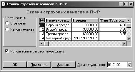 Рис. 3.9. Диалоговое окно Ставки страховых взносов в ПФР