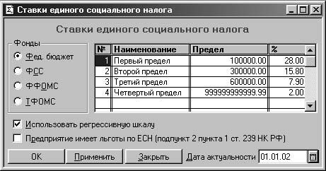 Рис. 3.6. Диалоговое окно Ставки единого социального налога