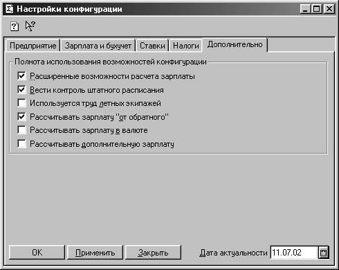 На вкладке Дополнительно выбирается полнота использования функциональных возможностей конфигурации (рис. 3.10).