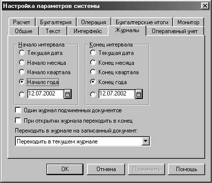 Параметр При открытии журнала переходить в конец определяет режим установки на самый поздний документ при открытии журнала.