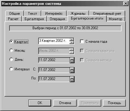 Рис. 3.15. Диалоговое окно Настройка параметров системы, вкладка Бухгалтерские итоги