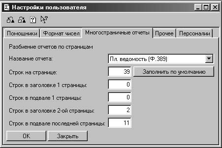 Рис. 3.19. Диалоговое окно Настройки пользователя , вкладка Многостраничные отчеты
