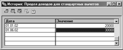 Рис. 3.24. История значений константы "Предел доходов для стандартных вычетов"