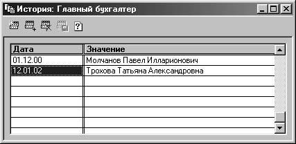 Рис. 3.23. История значений константы "Главный бухгалтер"