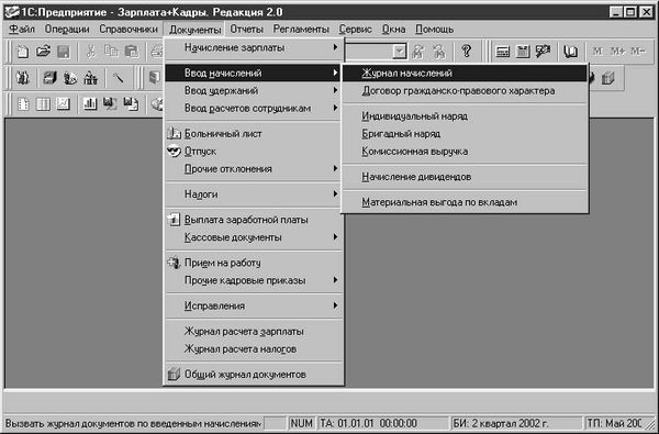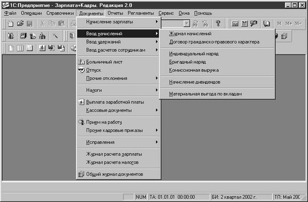 Документы формируют регистры автоматически, если, конечно, оператор подтвердит необходимость формирования регистров. Не формируют регистров только кадровые документы. Например, перевод сотрудника в другое подразделение или изменение должности может и не повлиять на расчет его заработной платы. Кроме первичных документов, существуют так называемые регламентные документы, которые формируются раз в месяц, а именно: начисление заработной платы.