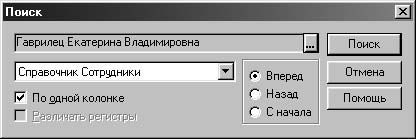 Существует также поиск по произвольному критерию. Для этого необходимо выбрать в меню Действия главного меню программы пункт Искать в группе Поиск . На экран будет выдано диалоговое окно Поиск (рис. 4.19).