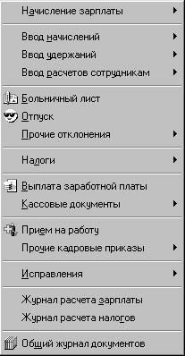 К первой группе относится интегрированный журнал "Начисление зарплаты", в котором формируются следующие документы: