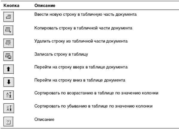 Таблица 4.5. Специальные кнопки окна документа