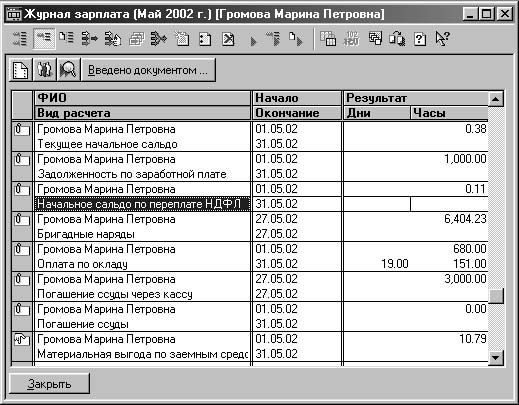 Рис. 4.27. Журнал расчета зарплаты с введенным начальным сальдо