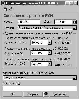 Рис. 5.6. Диалоговое окно Сведения для расчета ЕСН