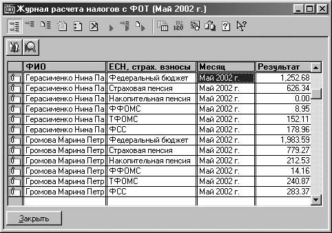 Рис. 5.2. Журнал расчетов налогов с ФОТ