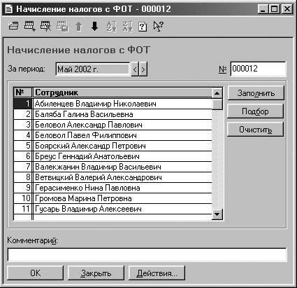 Рис. 5.5. Диалоговое окно Начисление налогов с ФОТ