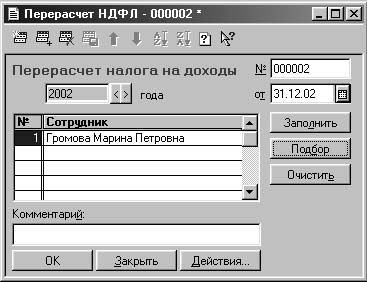 Рис. 5.7. Диалоговое окно Перерасчет НДФЛ