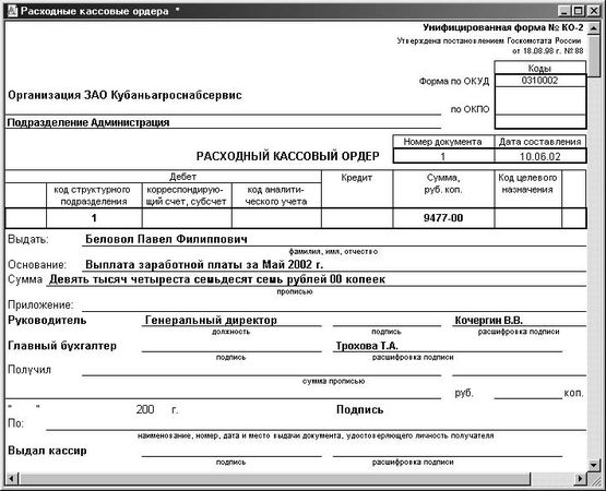 Рис. 6.5. Расходный кассовый ордер