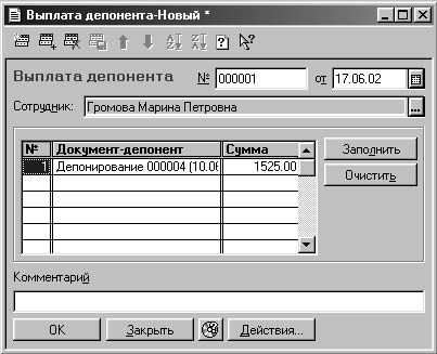 Рис. 6.11. Диалоговое окно Выплата депонента
