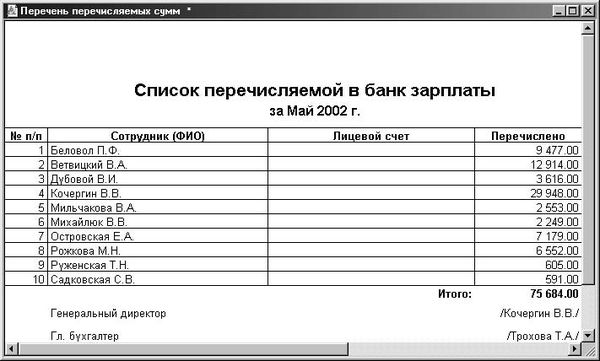 Рис. 6.7. Отчет о перечисляемых суммах в банк