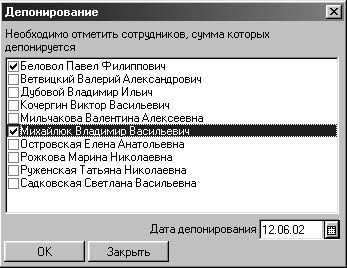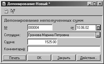 Рис. 6.9. Диалоговое окно Депонирование неполученных сумм