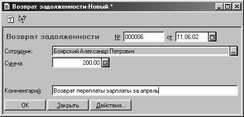 Рис. 6.14. Диалоговое окно Возврат задолженности по заработной плате