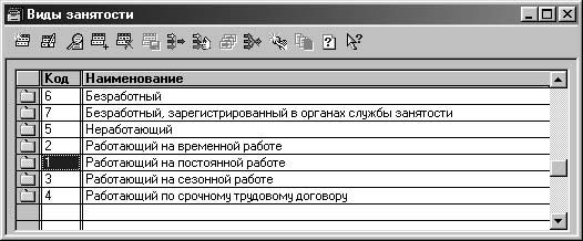 Рис. 7.8. Диалоговое окно справочника "Виды занятости"