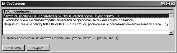 Рис. 7.3. Диалоговое окно Сообщения при отклонении от штатного расписания