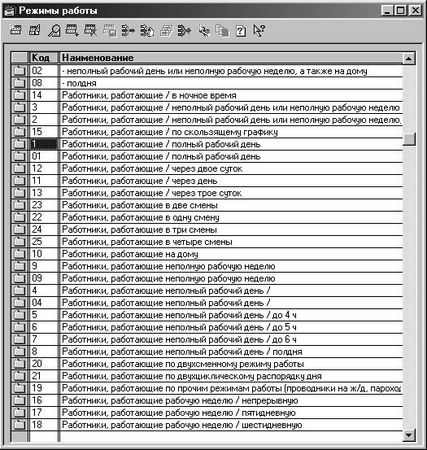 Рис. 7.9. Диалоговое окно справочника "Режимы работы"