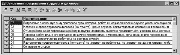 Рис. 7.12. Диалоговое окно справочника "Основания прекращения трудового договора"