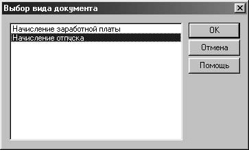 3. В диалоговом окне Выбор вида документа выбрать пункт Начисление отпуска (рис. 7.13).
