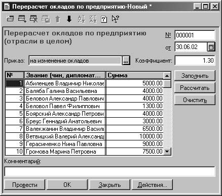 Рис. 7.18. Диалоговое окно Перерасчет окладов по предприятию