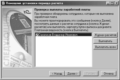 На третьем этапе пользователю предлагается диалоговое окно со списком сотрудников, у которых обнаружены отклонения (рис. 8.6).