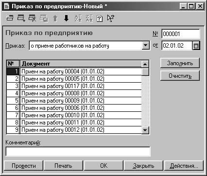 Рис. 7.19. Диалоговое окно Приказ по предприятию