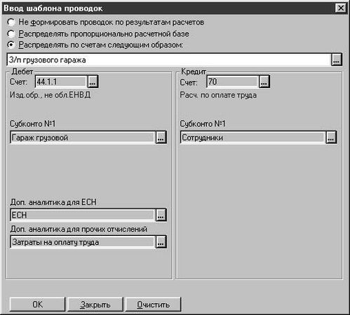 Следует иметь в виду, что заданный шаблон проводки не приводит к автоматическому формированию проводок именно по этому шаблону для всех сотрудников данного подразделения. Чтобы проводки формировались по шаблону, его необходимо задать для каждого сотрудника подразделения в справочнике "Сотрудники".