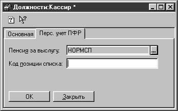 Рис. 2.22. Диалоговое окно Должности , вкладка Перс. учет ПФР