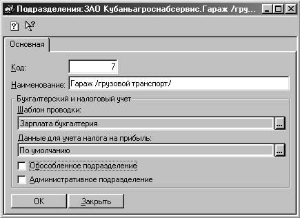 Рис. 2.27. Диалоговое окно Подразделения , вкладка Обособленное подразделение