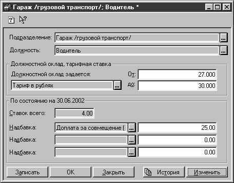 Рис. 2.30. Диалоговое окно единицы штатного расписания