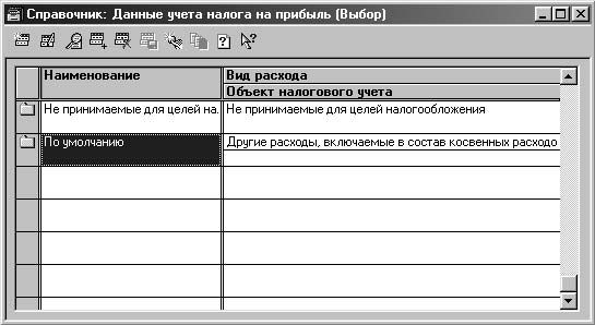 Рис. 2.26. Диалоговое окно справочника "Данные учета налога на прибыль"