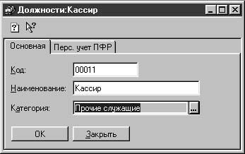 Рис. 2.21. Диалоговое окно Должности , вкладка Основная
