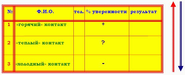 Целью "холодного контакта" является не продажа чего-то, а возможность подготовить собеседника и себя, в первую очередь, к другим ситуациям, связанным со сбытом. Это все равно, что тренировка в поднятии тяжестей или в беге на длинные дистанции. Этот бизнес не для спринтеров, а для стайеров.
