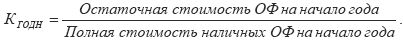 Коэффициент годности основных фондов на начало года рассчитывается по формуле: