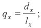 3) qx – вероятность умереть в течение предстоящего года жизни для лиц, достигших возраста x лет: