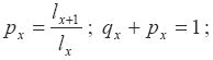 4) px – вероятность дожить до следующего возраста лиц, достигших возраста x лет: