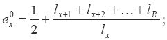 ex0 устанавливает число лет, которое предстоит прожить в среднем одному человеку из числа данного поколения родившихся или доживших до определенного возраста при условии, что на протяжении последующей жизни этого поколения повозрастная смертность будет неизменной.