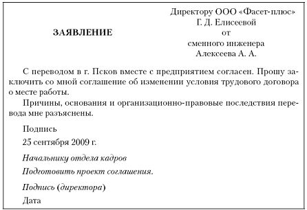 Рис. 22.1. Заявление о согласии с переводом в другую местность