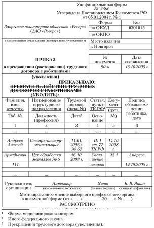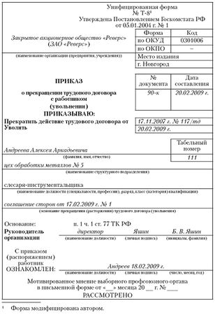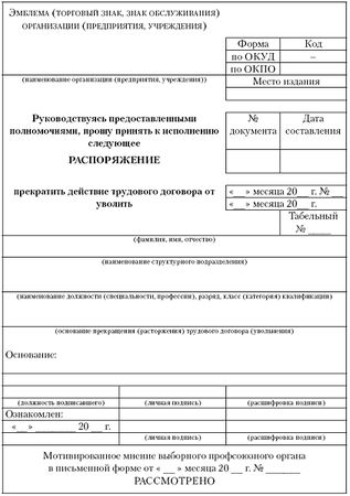 Рис. 1.25. Форма приказа об увольнении