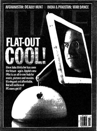 Крупные телевизионные каналы, в частности CNN, еще до начала выставки Expo обсуждали тайну нового сюрприза Apple. Предложив испытать монитор до выпуска и предоставив исключительное право на публикацию о нем, Apple добилась того, что журнал Time посвятил новому плоскоэкранному чуду текст на обложке под названием "Плоско и круто!" (рис. 2). Результат этого тщательно срежиссированного шоу с выпуском товара не заставил себя ждать – рекордные 150 тыс. предварительных заказов в первый же день.