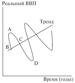 Таким образом, естественный уровень безработицы наблюдается при нормальном, устойчивом состоянии экономики. Вокруг этого уровня колеблется фактический уровень безработицы. Он ниже своего естественного уровня в период бума (точка А на рис. 5.2) и выше своего естественного уровня в период спада (точка D). Величина безработицы, равная разнице между фактическим и естественным уровнями безработицы, составляет ее третий, циклический, тип.